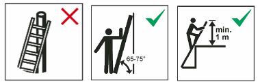 Opstellen van een enkele ladder (tegen een muur of andere steun)