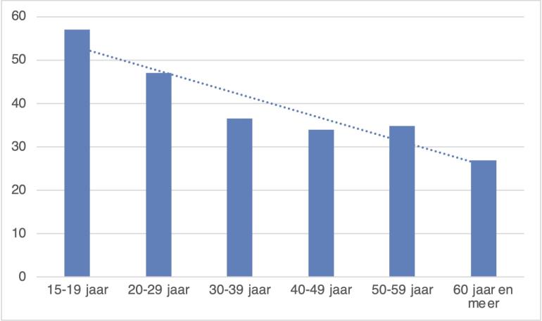 Over een periode van bijna 40 jaar is die tendens nog meer uitgesproken. Grafiek 1 toont de lange termijn tendens in de privésector — voor de publieke sector verzamelt Fedris de gegevens pas systematisch vanaf 2011. De trendlijnen in de grafiek wijzen op een duidelijk sterk dalende trend van de arbeidsplaatsongevallen terwijl er voor de woon-werkongevallen sprake is van een stijgende trend. Dit vertaalt zich ook in het aandeel van het aantal woon-werkongevallen in het totale aantal arbeidsongevallen. Dit percentage neemt duidelijk toe zowel in de privé- als in de publieke sector (tabel 1).